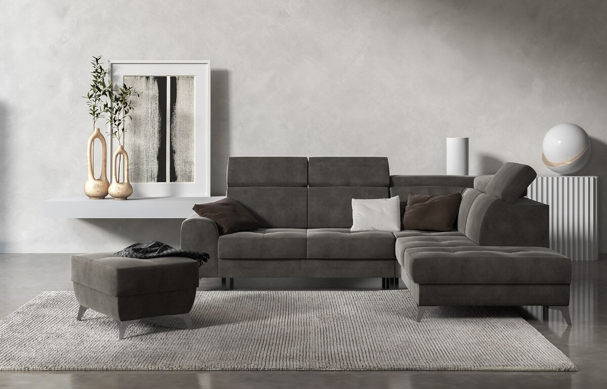 Loc de Relaxare Principal: Colțarul Diego poate fi utilizat ca piesă centrală de mobilier pentru relaxare și petrecerea timpului în sufragerie.
