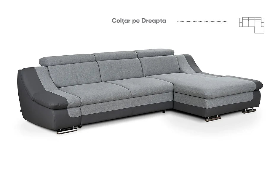 Tetiere Reglabile: Pentru un confort deosebit, colțarul Helios este echipat cu tetiere reglabile. Aceste tetiere pot fi ajustate pentru a vă oferi sprijin personalizat pentru cap și gât, garantând astfel o relaxare supremă în timpul utilizării.