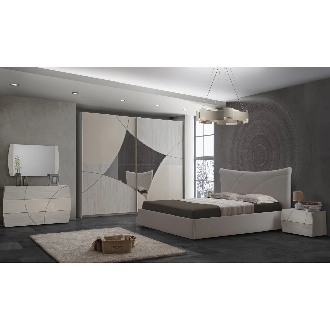 Organizare Eficientă: Dulapul spațios, noptierele și comoda cu oglindă contribuie la organizarea eficientă a spațiului și păstrarea ordinei în dormitor.
