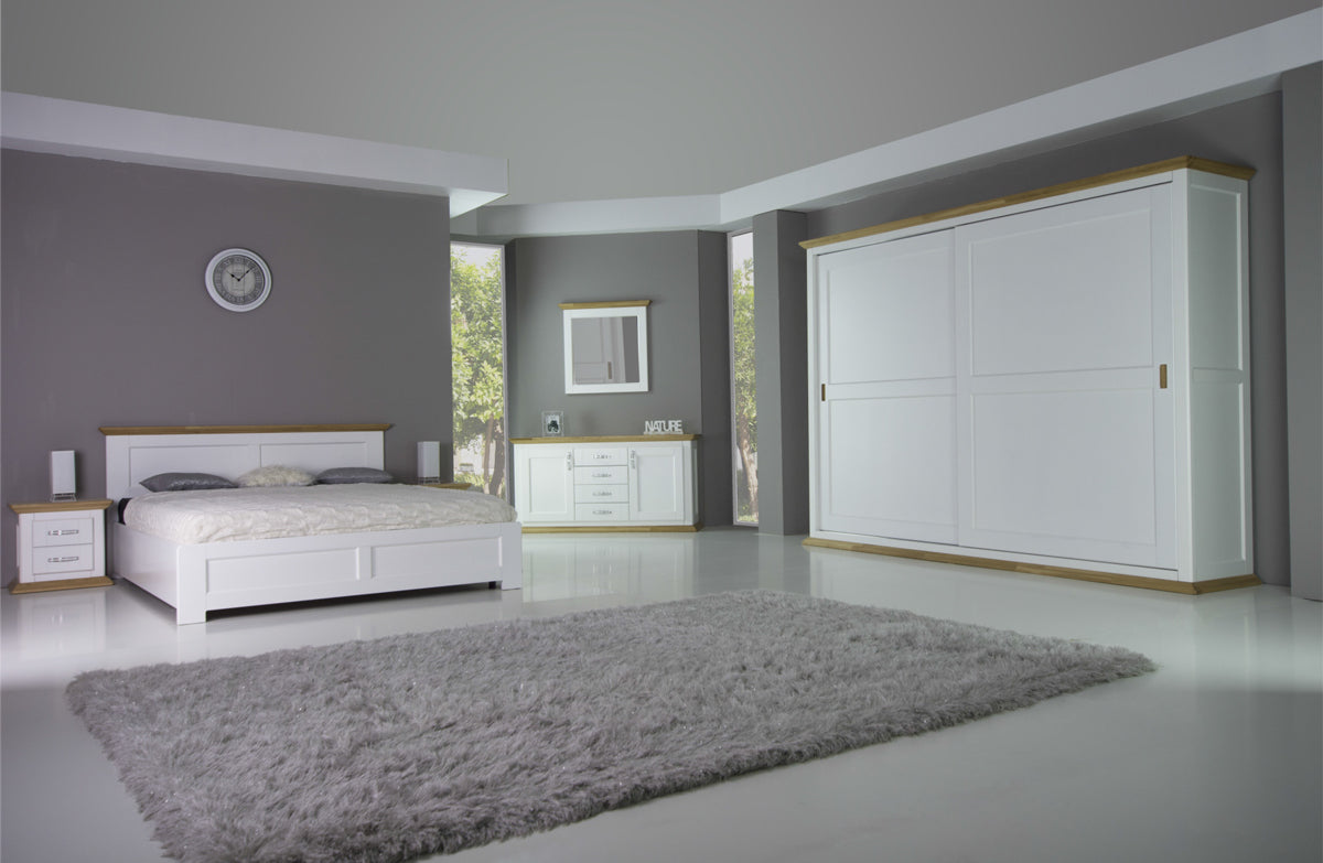 Combinație de Stiluri: Dormitorul "Diego" îmbină elemente clasice și moderne într-un mod echilibrat și armonios. Designul său se bazează pe linii curate și detalii minimaliste, dar include și elemente clasice precum dulapul cu uși culisante.