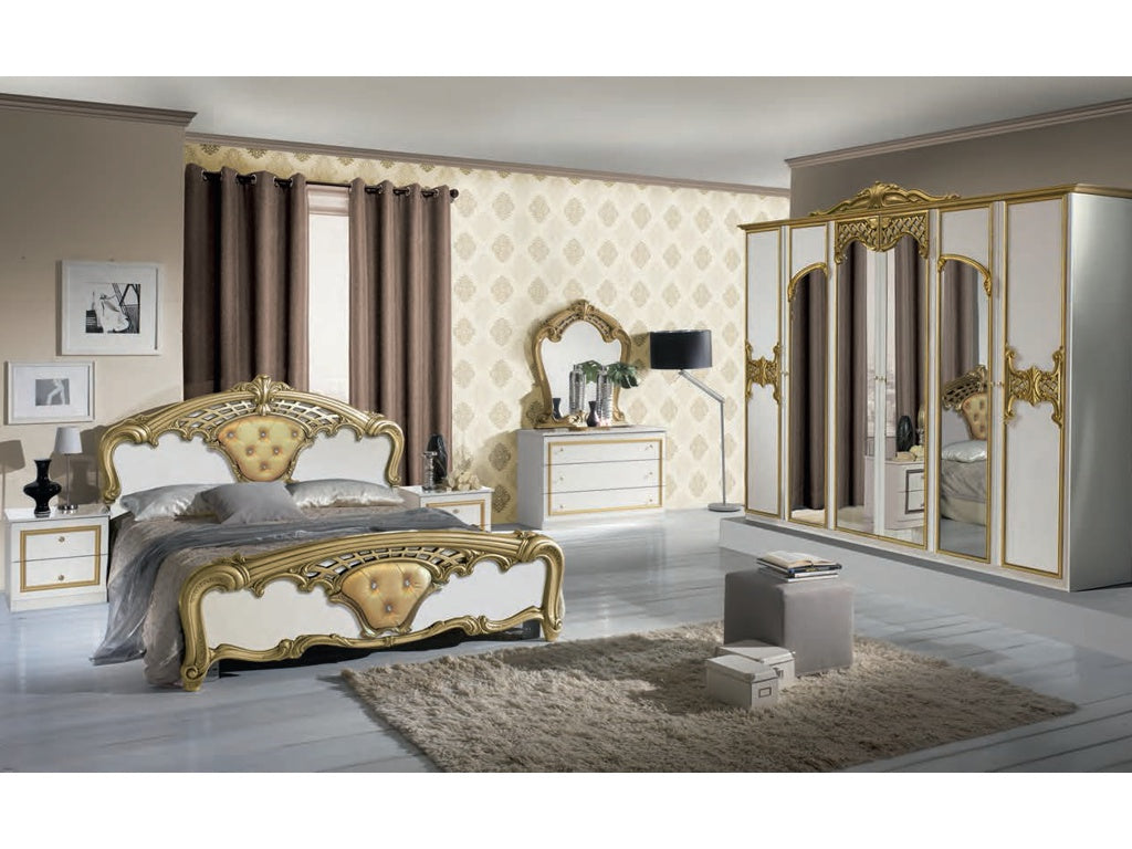 Accente Decorative de Efect: Oglinda este un element deosebit de impresionant în dormitorul "Eva". Rama acesteia poate fi decorată cu motive sculptate sau detaliile aurii caracteristice stilului luxos. Lămpile de perete cu brate curbe și abajururi fine adaugă un farmec special.