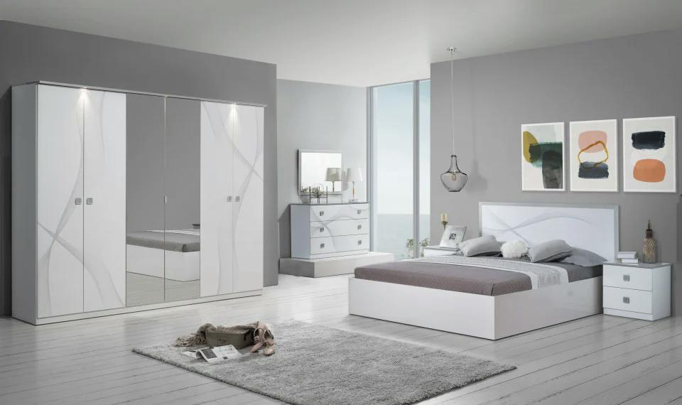 Dormitorul Matrix este alegerea ideală pentru cei care caută să combine modernitatea cu eleganța în spațiul lor de locuit. Cu un pat cu finisaj alb lucios, acest dormitor este nu numai un loc perfect pentru odihnă, ci și un punct focal impresionant în camera dumneavoastră.