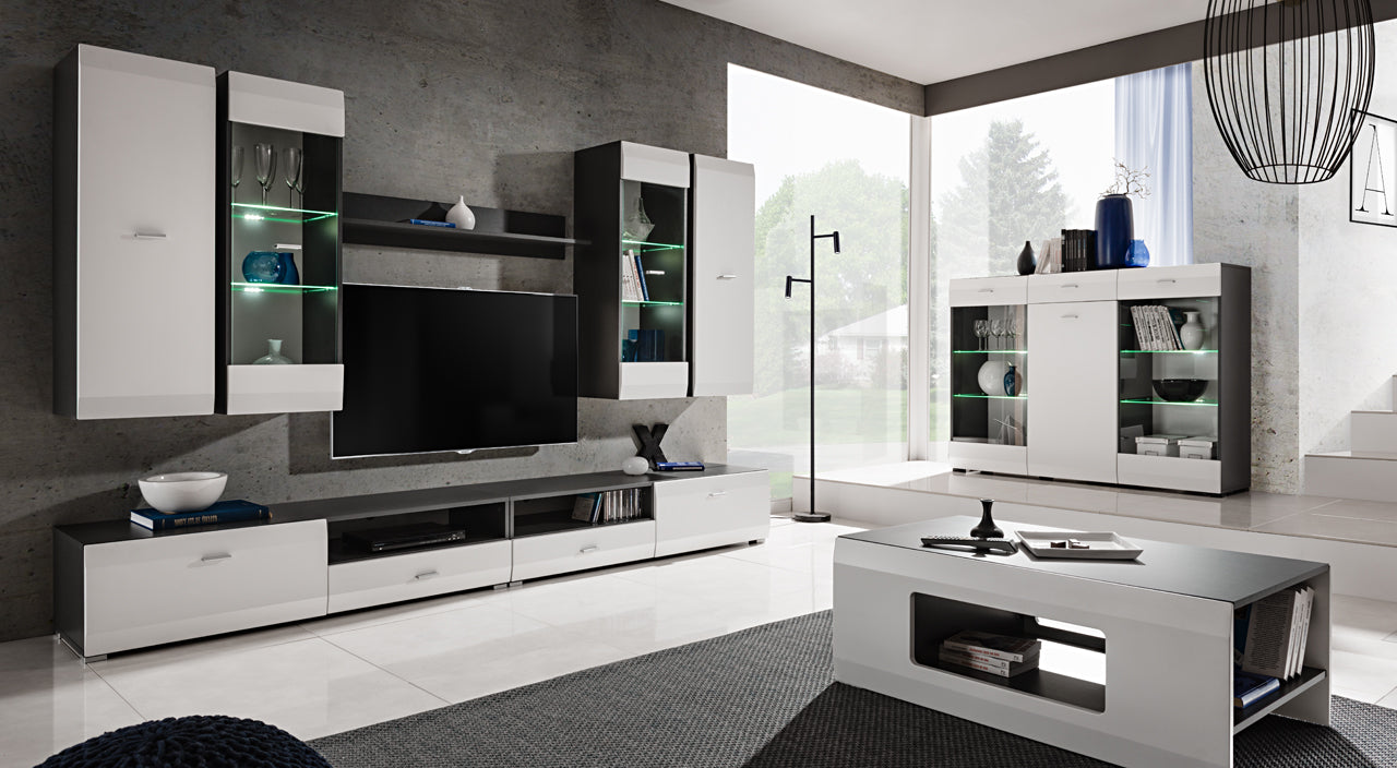 Acest set de mobila pentru living CLIFF este format din corpuri ce arata latura practică a acestui mobilier pentru camera de zi.